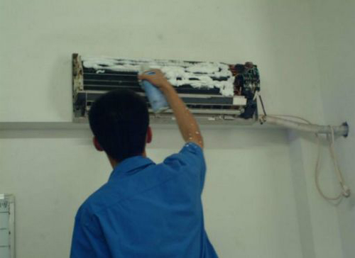 | 南通市空调维修师傅给南通市用户上门维修清洗空调。 |